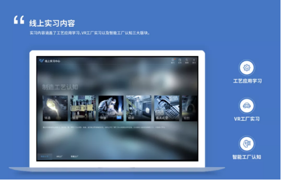 为学生提供了虚拟的实习环境,并且提供各类制造工艺、制造工厂、智能工厂的认知实习。学生真实实习之前可以在线上实习平台进行反复的学习和操作,从而极大的提升学习效果。