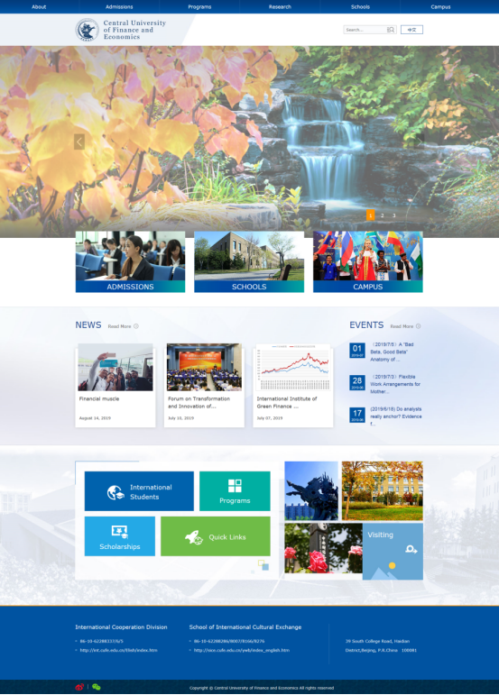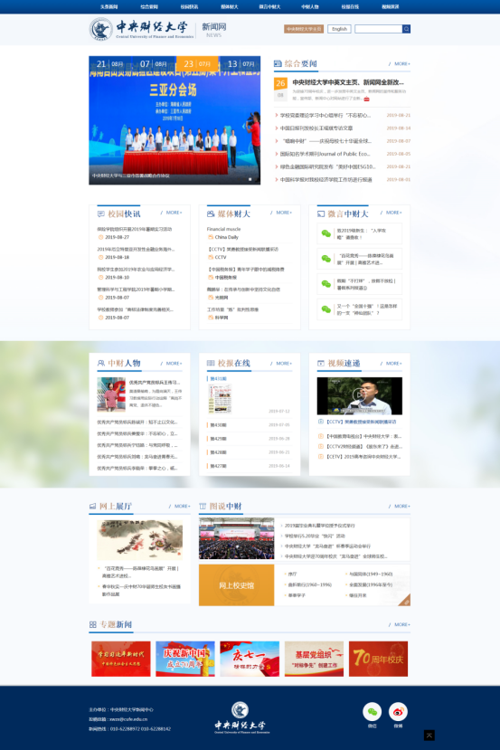 中央财经大学与祖国同龄,一路见证国家富强,为迎接祖国母亲与中财70周年华诞,进一步发挥中英文主页、新闻网的宣传和服务功能,更好地服务学校 “双一流”建设,中央财经大学网站全新上线。