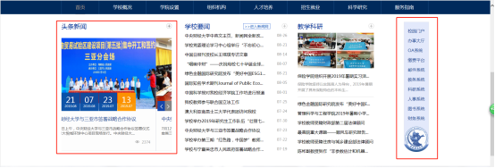 独特别致的快速通道集成了师生常用的校园服务系统,方便师生查找,采用中财标识作为造型,突出学校特性,功能性与颜值兼备;