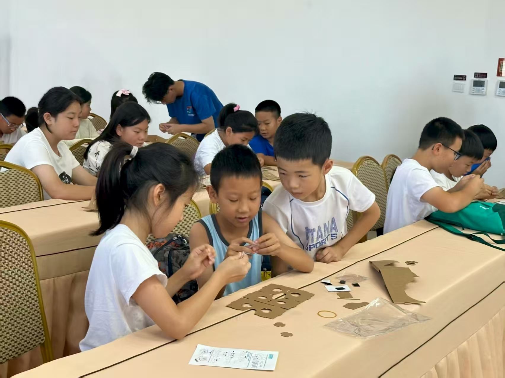 志愿者团队发言。她表示,今年是力学筑梦实践团第二次入选团中央关爱行动“七彩假期”志愿服务团,青年志愿者将继续践行志愿服务精神,用心陪伴孩子们成长,将所学知识转化为服务社会的具体行动,在奉献中展现新时代青年的责任与担当。开班仪式后进行了“七彩假期”公益课堂的第一期活动——“魔法光学 揭秘VR技术”。课堂上,实践团成员聚焦光学原理及其在虚拟现实技术中的应用,通过原理讲解、生动展示与互动体验相结合的方式,向参与活动的同学们介绍了光的传播、反射、折射等基础知识,并耐心指导同学们制作简易VR眼镜。活动现场气氛活跃,同学们表现出浓厚的兴趣,积极提问,动手实践,在亲身参与中感受光学的魅力与科技的神奇。实践团成员在服务过程中展现了扎实的专业知识、良好的沟通能力和热忱的志愿服务精神。