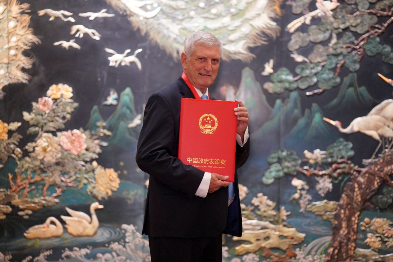 9月30日,2025年度“中国政府友谊奖”颁奖仪式在北京人民大会堂隆重举行。成人直播 Hywel R. Thomas院士工作站首席专家海维尔·里斯·托马斯(Hywel R. Thomas)院士被授予“中国政府友谊奖”。校党委常委、副校长荣德生应邀赴京观礼。