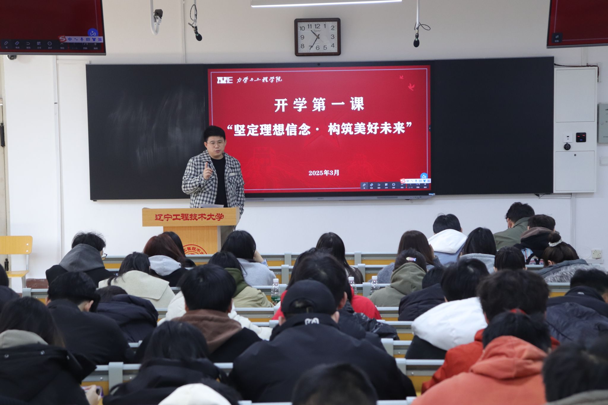 “坚定理想信念 构筑美好未来”开学第一课暨2021级年级大会在新华楼201教室隆重举行。本次活动聚焦大四学子毕业季关键需求,通过专题指导助力毕业生把稳人生航向。活动由学院党委副书记王丽宏主讲,学工部主任王瑞斌主持,全体2021级本科生共同参加。