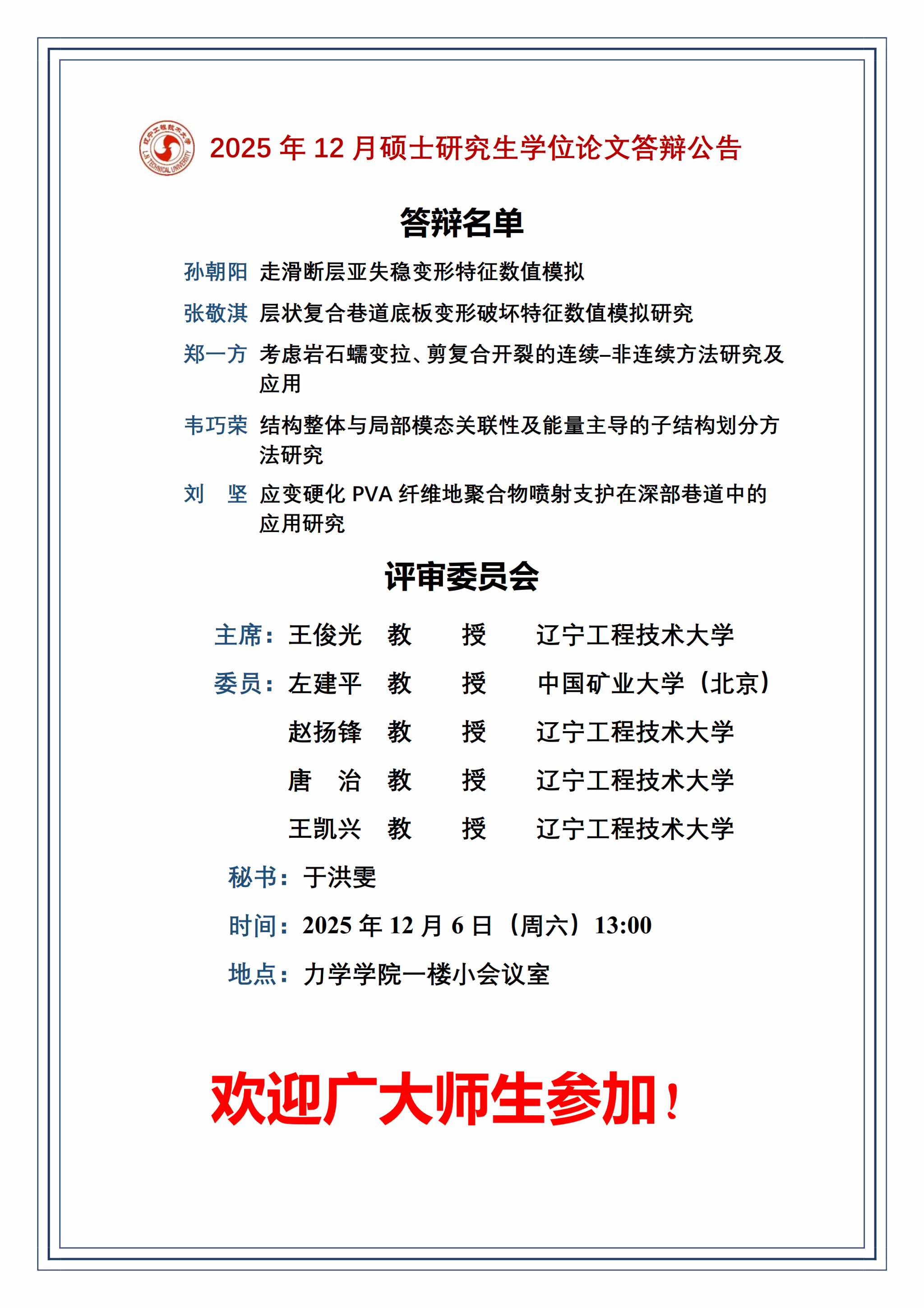 2025年12月硕士研究生学位论文答辩公告(2组)