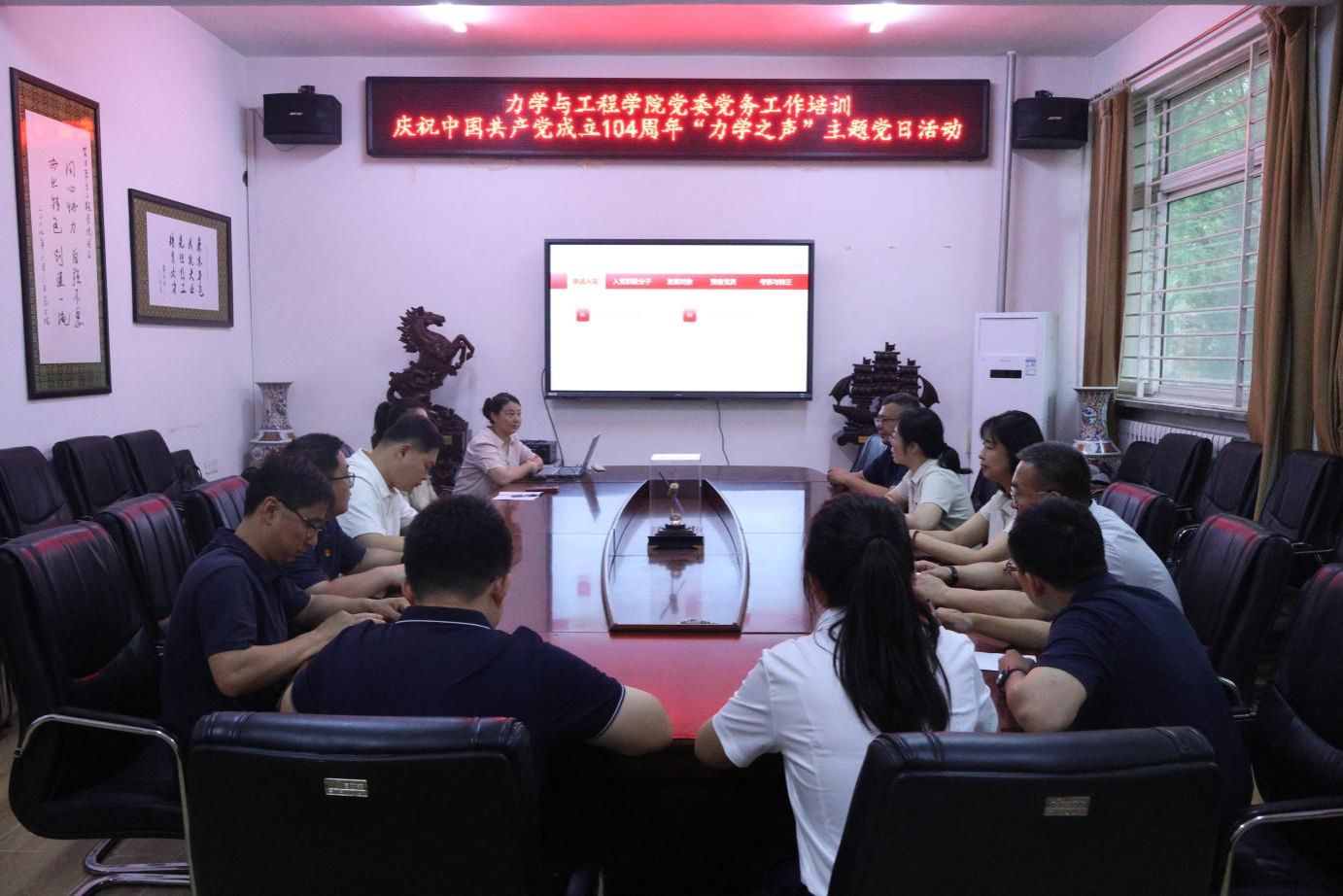 党委开展铭记初心担使命·砥砺奋进新征程——庆祝中国共产党成立104周年“力学之声”主题党日活动。此次活动分为参观“礼赞百年芳华 凝聚复兴力量——中国共产党阜新历史红色档案记忆展”、赠送政治生日贺卡、重温入党誓词、专题党务培训、志愿服务清扫活动、支部党员谈心交流活动五部分。学院领导班子、党支部书记、师生党员代表参加活动。