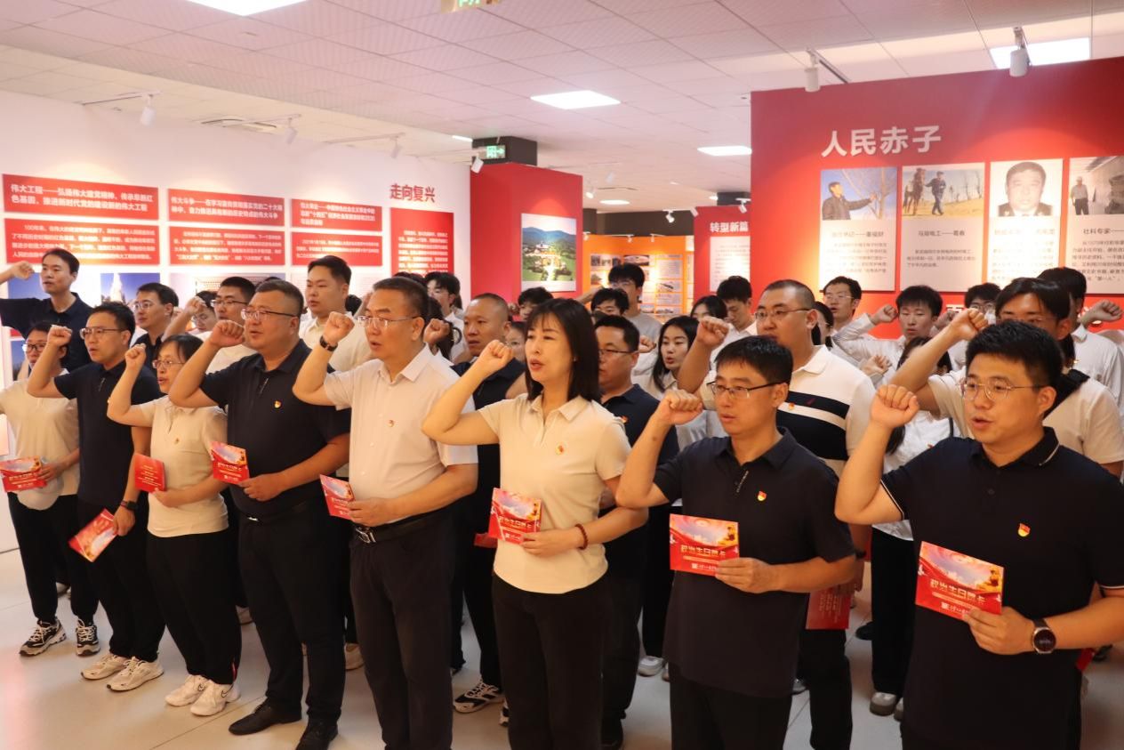 参观结束后,学院领导班子和党支部书记互赠政治生日贺卡,全体党员师生重温入党誓词。面对鲜红的党旗,全体党员高举右拳,庄严宣誓,铿锵有力的誓言再次表达了为党的事业奋斗终生的决心。