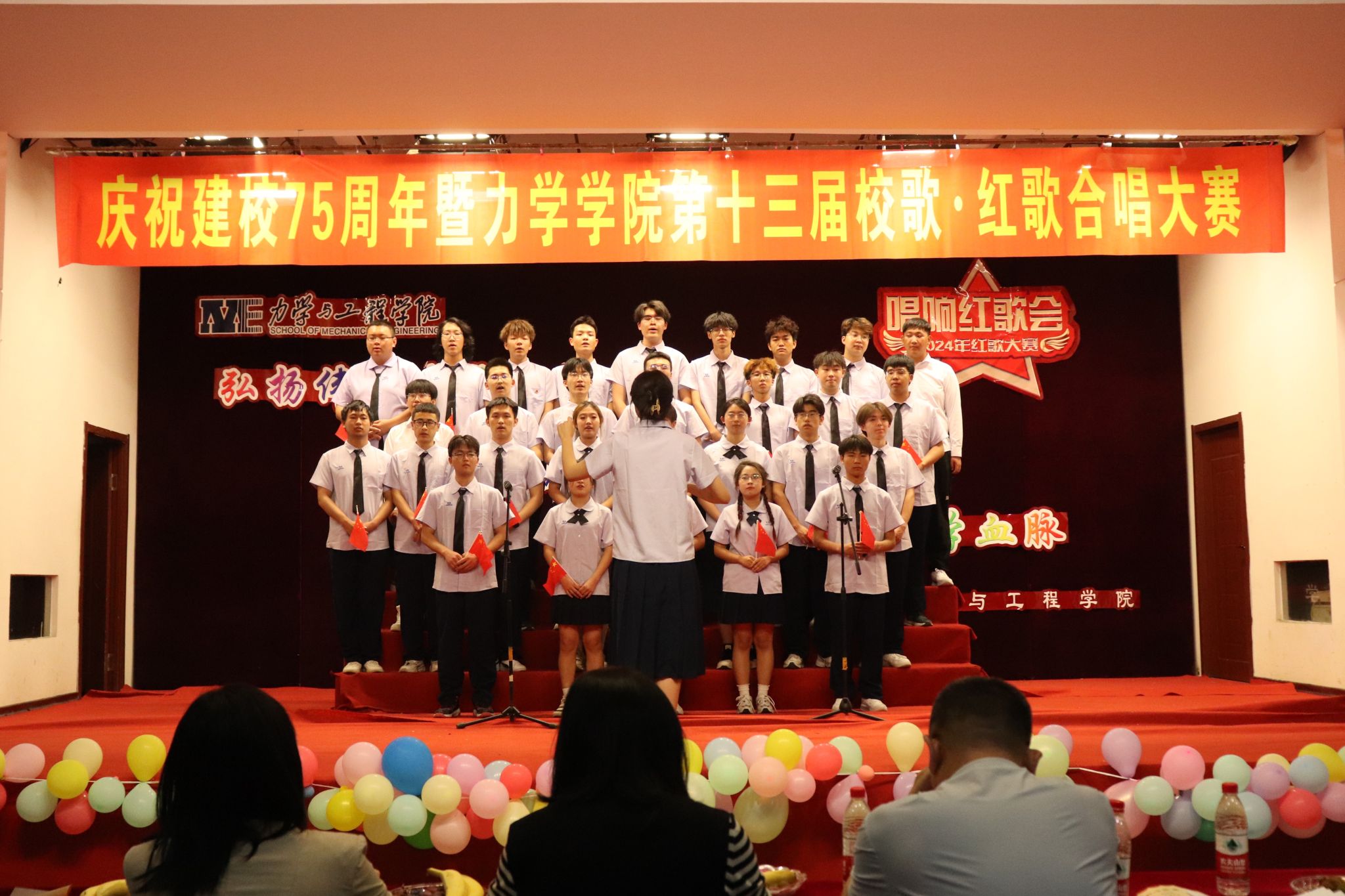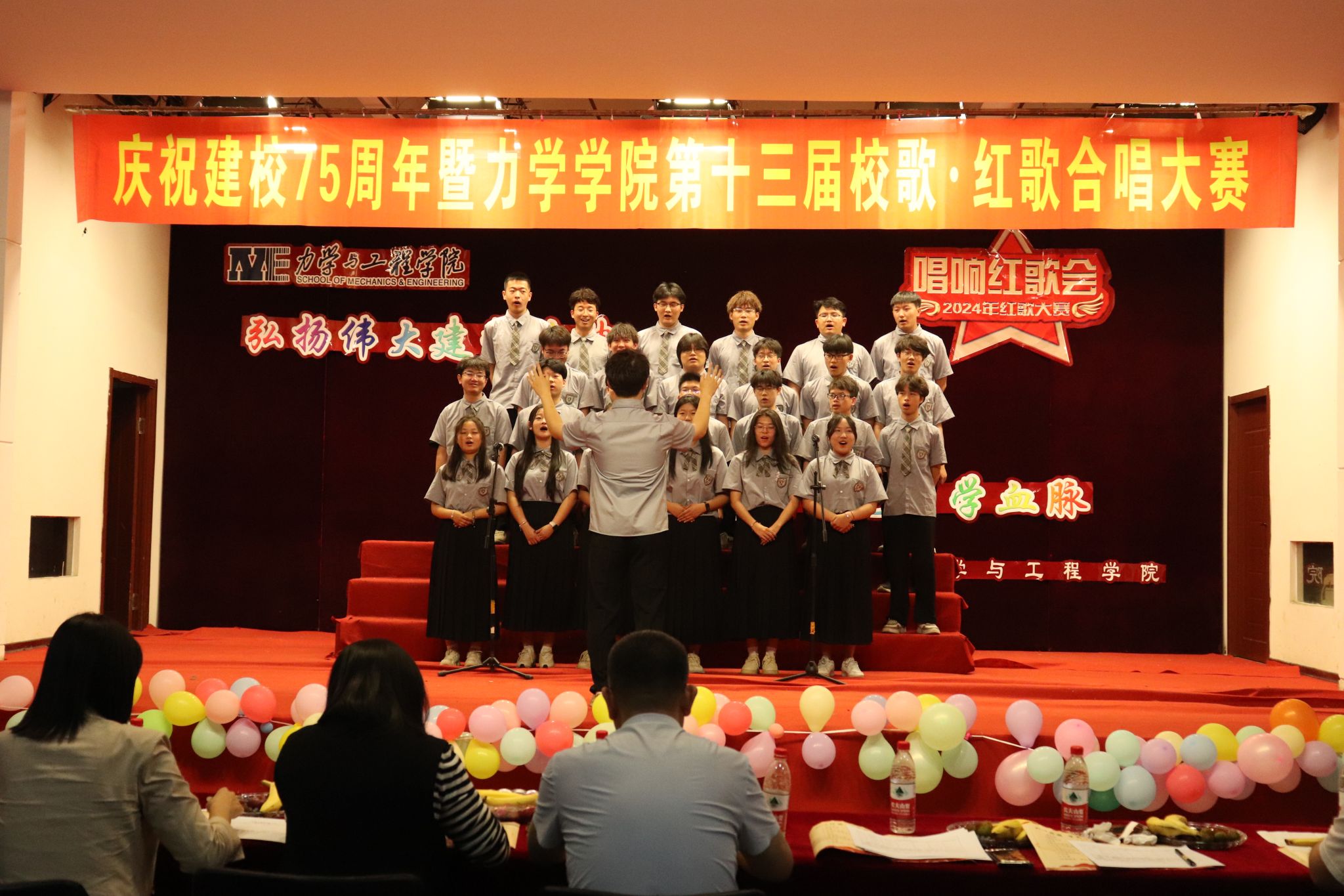(通讯员:解书华)为深入贯彻落实习近平总书记关于青年工作的重要思想和关于教育的重要论述,进一步引导全院学生坚定理想信念,传承红色基因,赓续共产党人精神血脉,厚植爱党爱国情怀,自觉增强使命担当,庆祝建国、建校75周年,增强班级凝聚力和荣誉感,成人直播 于5月29日在中华路校园大学生活动中心举办了“弘扬伟大建党精神 传承优秀传统文化 赓续红色力学血脉”第十三届校歌·红歌合唱大赛。