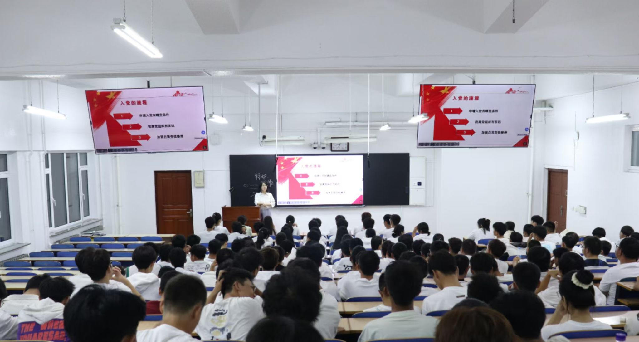 于博雅楼201教室举办2024级新生入党启蒙教育,本次活动由学院学生党支部书记解书华主讲。