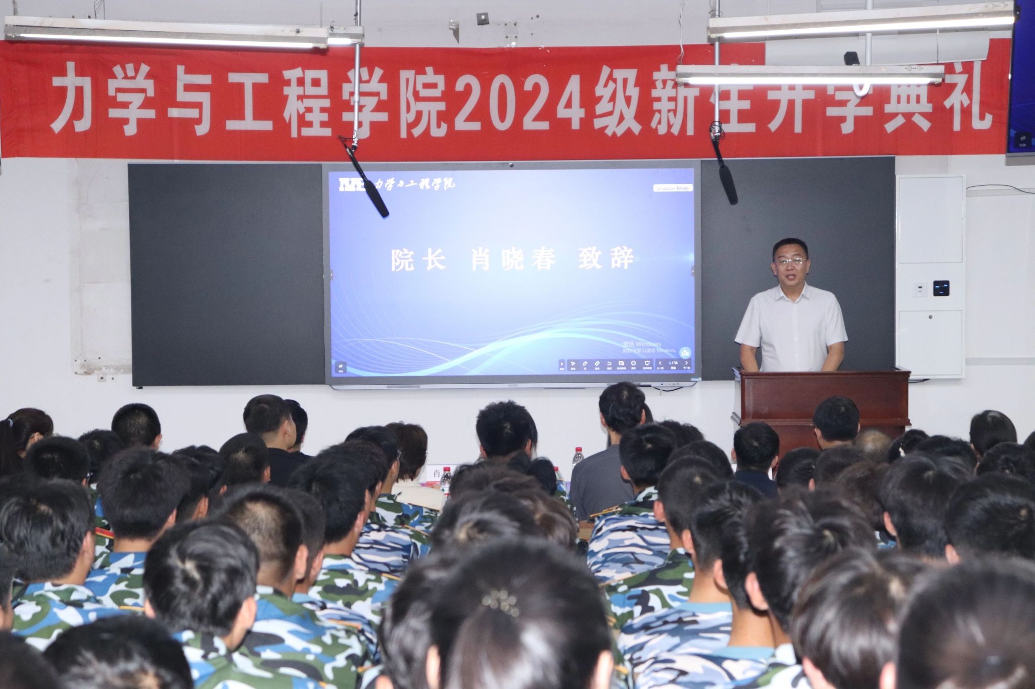 首先由肖晓春院长致辞,他对2024级新生的到来表示热烈欢迎并向新同学们介绍了学院基本情况:包括力学一级博士点、国家级教学团队和工程力学国家级第一类特色专业,高水平的实验教学团队,主持和参与多项重大课题。肖院长希望新生们能够努力学习,掌握本领,实现自我的人生价值、充分锻炼自己、明确自己的人生规划,勇于挑战,不断创新,在学院的培养下能够成为栋梁之才,将个人成长与国家发展相结合,为国家的繁荣和民族的复兴贡献力量。