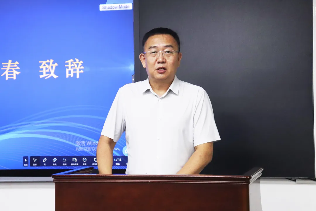 在新华楼202隆重举行2024级新生开学典礼。院长肖晓春、党委书记高薇、党委副书记王丽宏、副院长孙维吉、优秀校友代表代连朋,各系主任、辅导员、2024级班导师及全体新生参加了典礼。典礼由学生工作部主任王瑞斌主持。