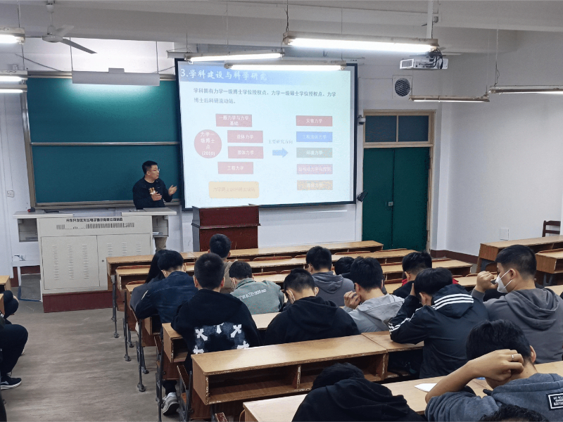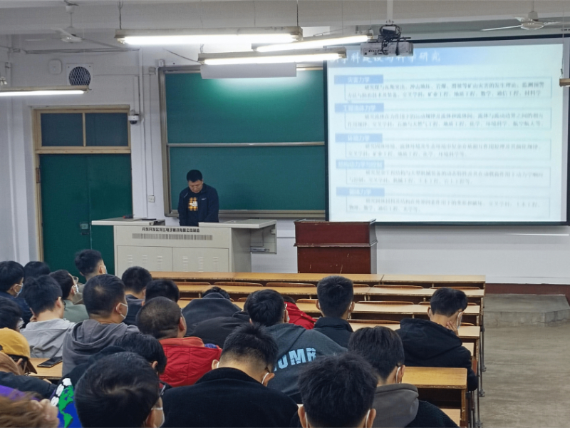 孙维吉副院长介绍了学院学科、专业的历史沿革和发展现状,并对学院现有的硕士、博士生导师进行了详细的介绍,在帮助同学们了解导师们研究方向的同时,分析了同学们在考研和就业方面的优势和不足。孙维吉副院长还结合学院近几年毕业生的考研、就业情况提出自己的见解,并建议学生结合自身情况选择合适自己的方向,及时捋清、调整自身职业规划方向,为自己的选择付出努力,做到顺利毕业、满意升学、高质就业。