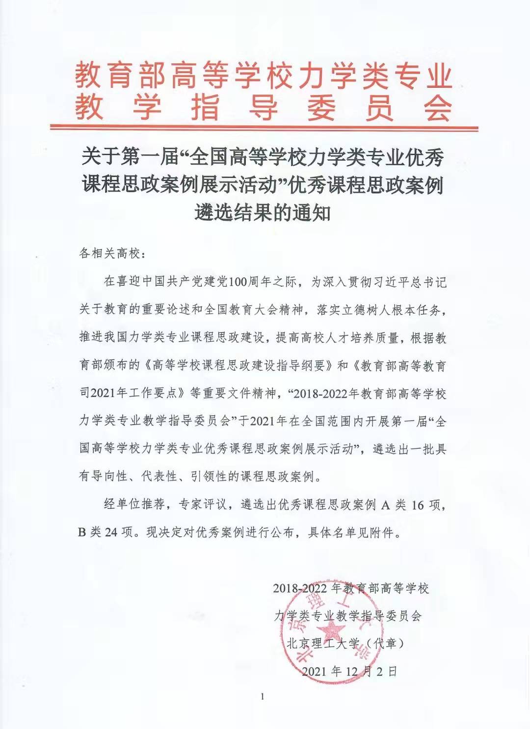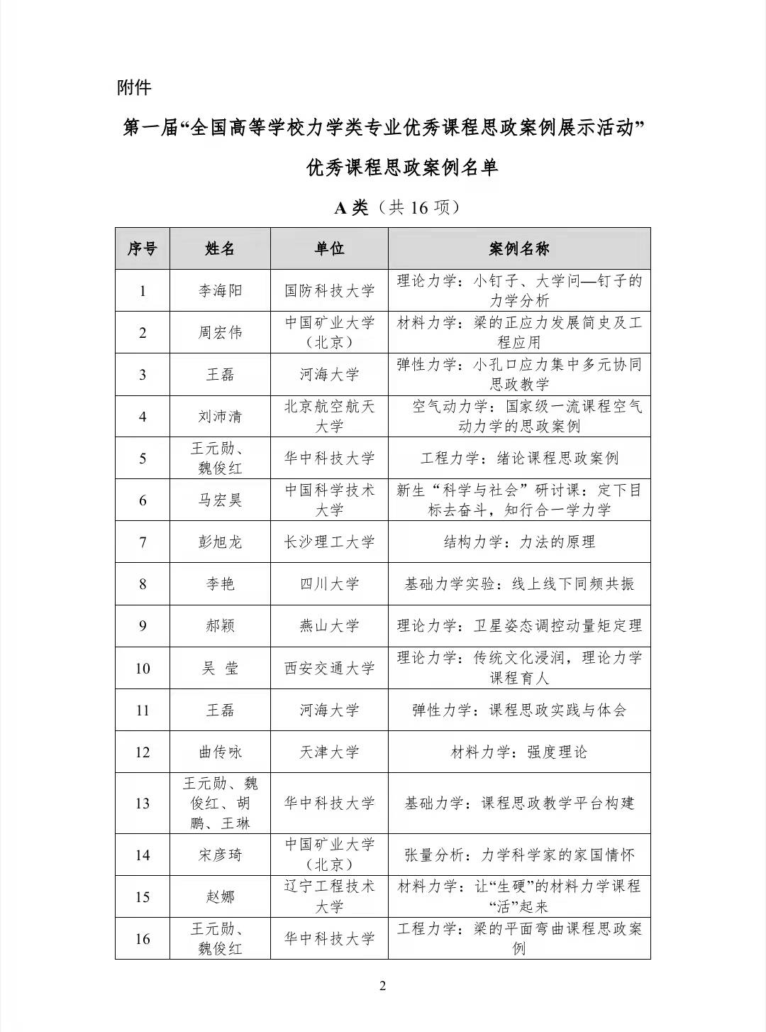 近日,教育部高等学校力学类专业教学指导委员会发布了《关于第一届“全国高等学校力学类专业优秀课程思政案例展示活动”优秀课程思政案例遴选结果的通知》,成人直播